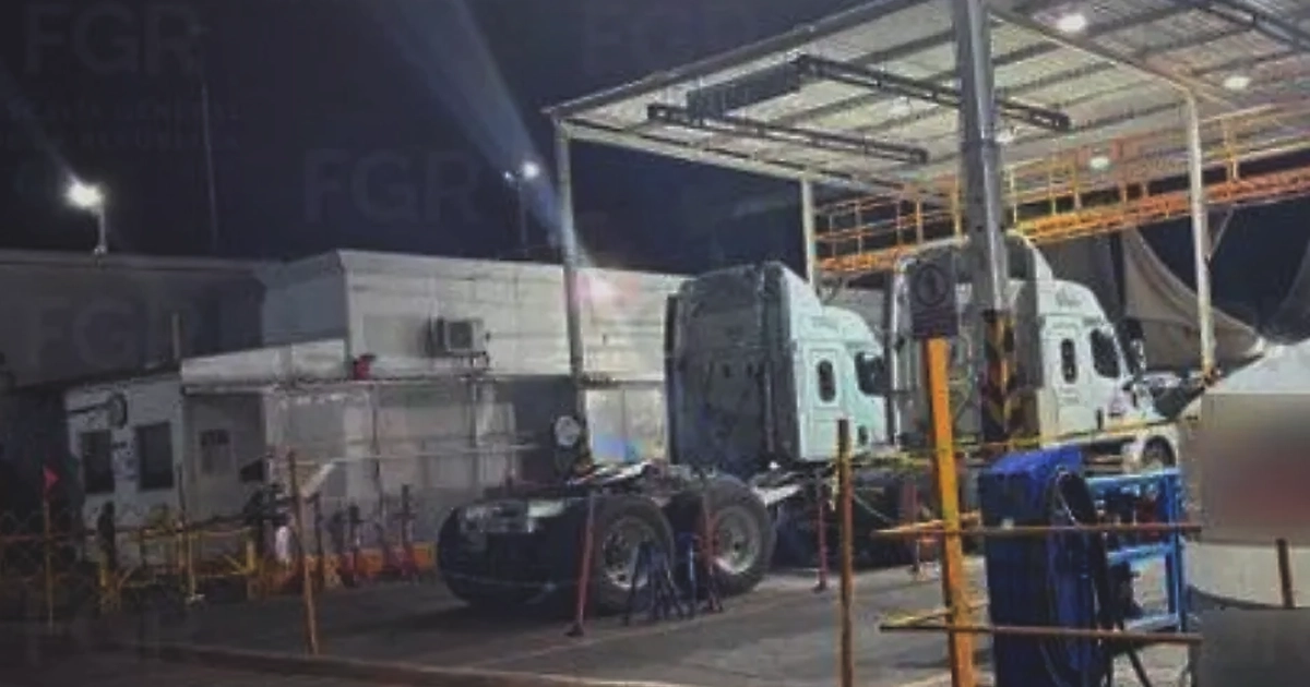 En total fueron asegurados un cubitanque de mil litros, un contenedor de cinco mil litros, una bomba despachadora, dos mil 550 litros de hidrocarburo, 14 tractocamiones, 16 cajas secas y el inmueble.