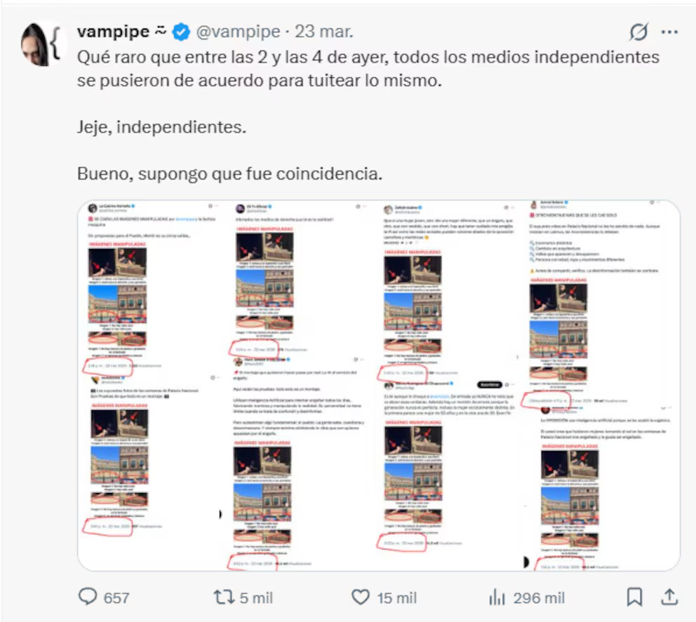 La controversia estalló cuando el creador de contenido y crítico del gobierno, “Vampipe“, difundió en la plataforma X un video que mostraba a una mujer de entre 25 y 30 años sentada en un ventanal del recinto histórico. Ella tenía el vestido recogido para recibir los rayos del sol. La imagen capturó rápidamente la atención pública. Así, generó desde burlas de figuras como la actriz Laisha Wilkins hasta debates sobre el uso de los espacios públicos.
