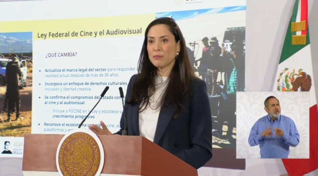 La secretaria de Cultura, Claudia Curiel de Icaza, informó acerca de los cambios en la ley de cine y el audiovisual después de 30 años, así como las iniciativas de reforma a la ley federal del trabajo y la ley federal del derecho de autor.