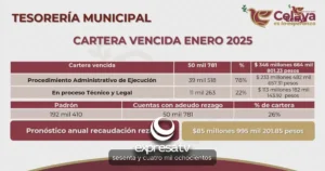 Celaya, Guanajuato La Tesorería Municipal de Celaya reportó un cumplimiento del 78% en el pago del impuesto...